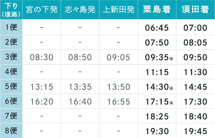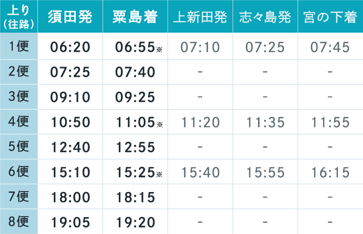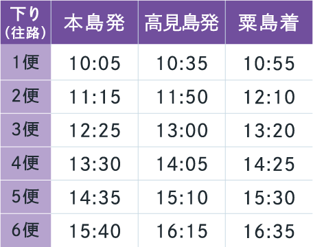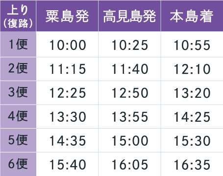 • 運行区間:須田港ー粟島港ー 宮の下港