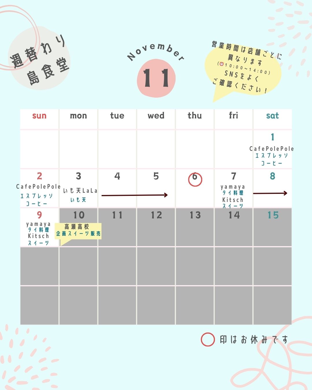 10/14㈰~10/22㈬ 10:00~ (旬彩料理高やの場合)