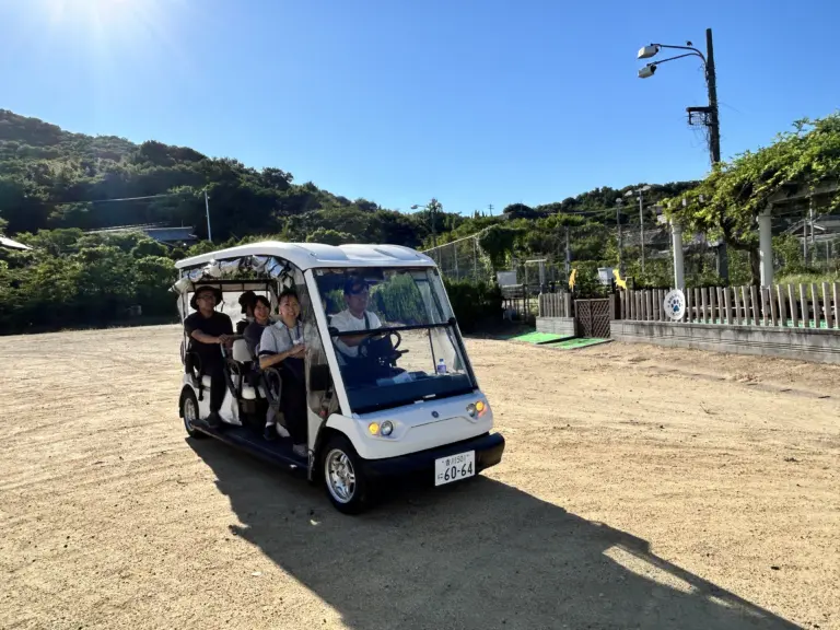 作品鑑賞を巡った後、島の魅力をお手軽に体感できるおすすめコースです。移動には、環境にやさしい電動カート「グリーンスローモビリティ」を利用。ゆったりとしたスピードで走る瀬戸内の景色や、島ののどかな雰囲気を五感で味わえます。作品鑑賞だけでなく、粟島ならではの特別な周遊体験をお楽しみください。