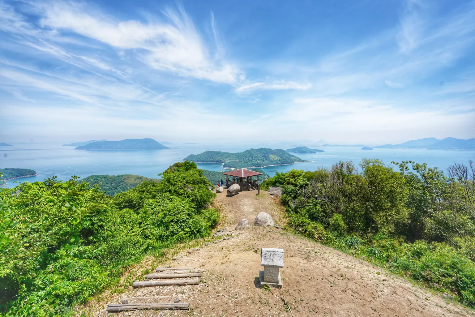 粟島の西側にそびえる城山(222m)を登るコース。道中は緑に囲まれ、山頂にたどり着けば瀬戸内の島々を一望できる大パノラマが広がります。ハイキングコースとしてちょうどよい達成感も感じられ、粟島の特徴的な地形を俯瞰できるのも魅力的です。
