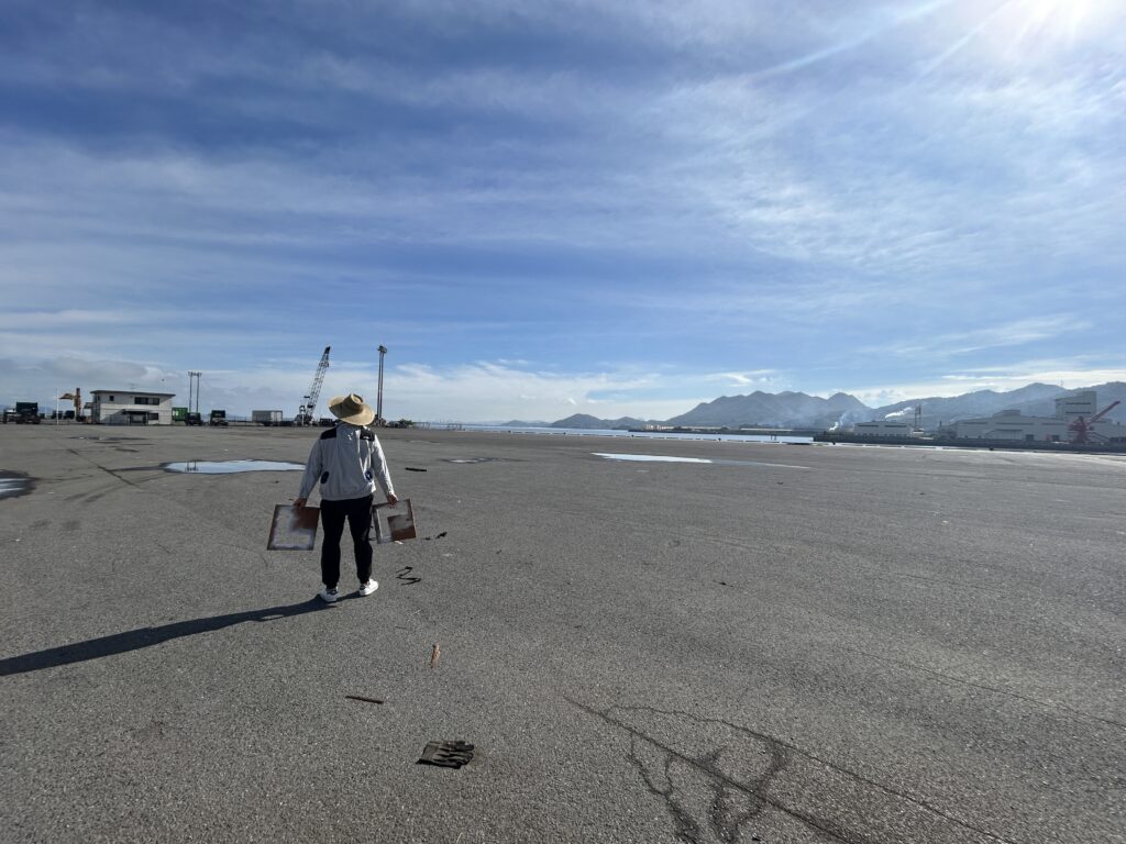 午前9時、灼熱の太陽の下、姐さんと相棒、そして瀬戸芸戦士4人が集合!